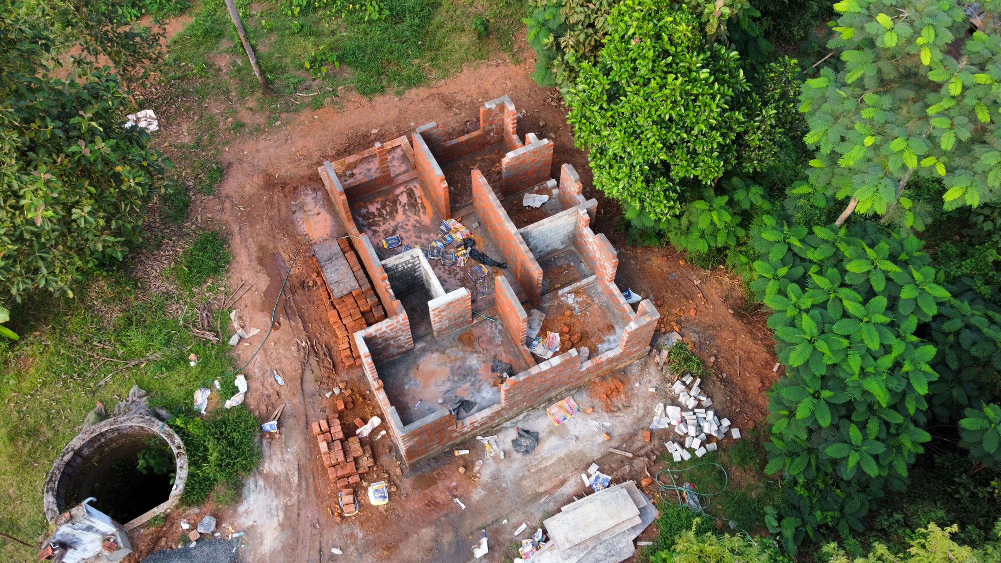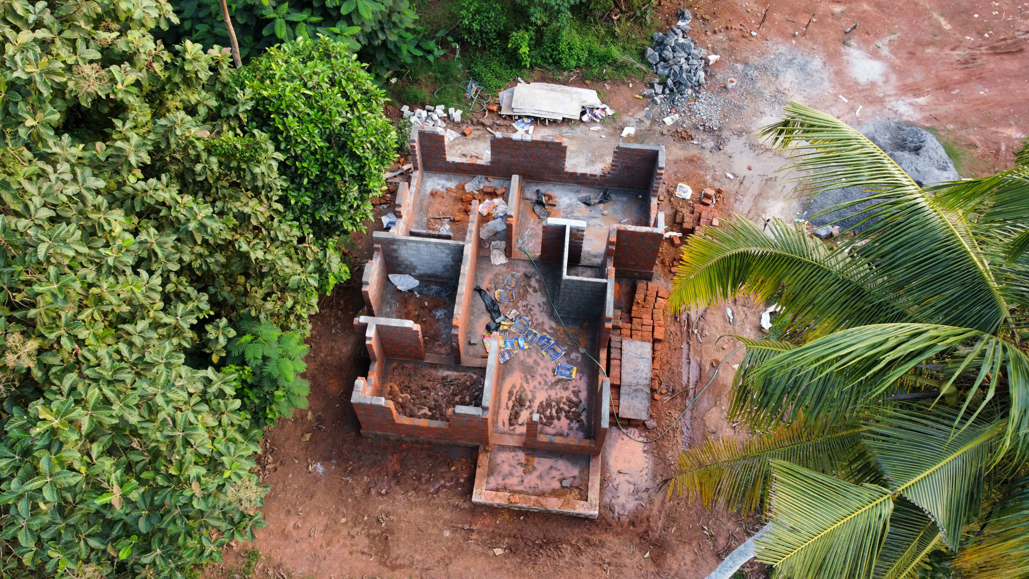 Structure work of 1000 sqft house with 2 bedrooms is in progress.